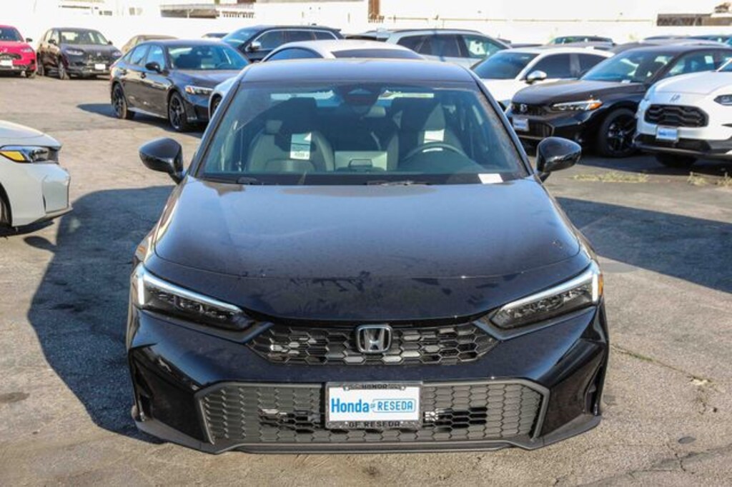 Crystal Black Pearl 2026 Honda Civic Sport FWD CVT 2.0L I4 DOHC 16V Blk Clth/Lthette Artificial Leather.