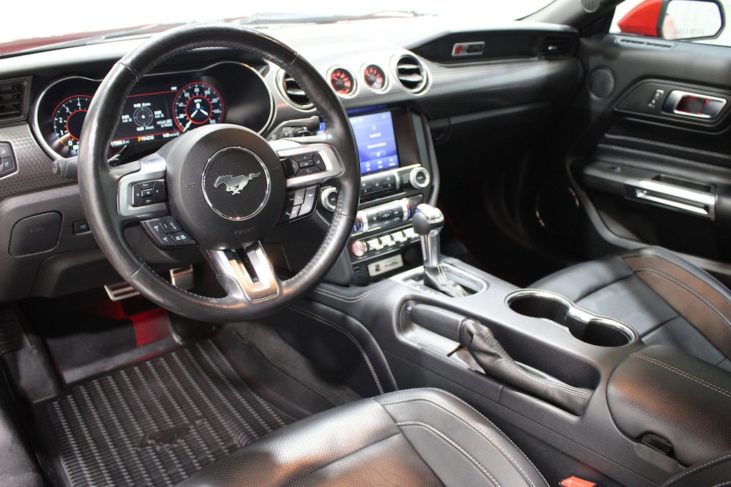 Under the hood, the 5.0L V8 Ti-VCT paired with a 10-speed automatic delivers thrilling power, lightning-fast response, and that iconic Mustang roar that announces your arrival. Rear-wheel drive ensures an authentic, spirited driving experience every time you hit the road.