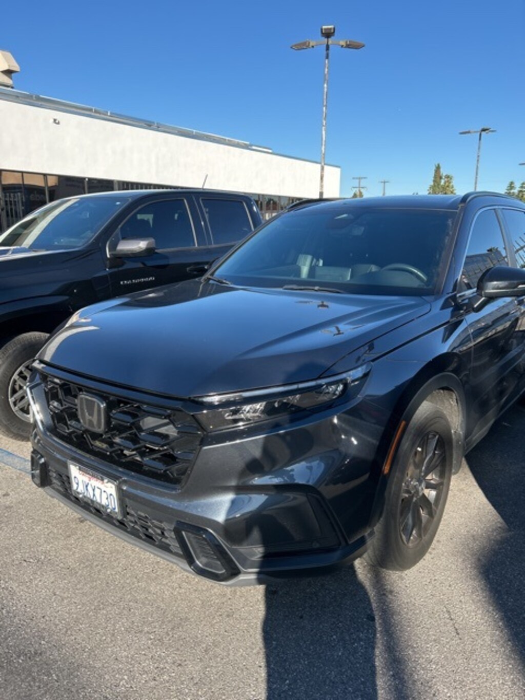 This 2024 Gray Honda CR-V Hybrid Sport-L AWD is well equipped and includes these features and benefits: 2.0L I4 DOHC 16V, 4-Wheel Disc Brakes, 4.438 Axle Ratio, 8 Speakers, ABS brakes, Adaptive Cruise Control: Adaptive Cruise Control (ACC) with Low-Speed Follow, Air Conditioning, Alloy wheels, AM/FM radio: SiriusXM, Auto High-beam Headlights, Auto-dimming Rear-View mirror, Automatic temperature control, Blind Spot Information (BSI) System warning, Brake assist, Bumpers: body-color, Compass, Delay-off headlights, Driver door bin, Driver vanity mirror, Dual front impact airbags, Dual front side impact airbags, Electronic Stability Control, Exterior Parking Camera Rear, Four wheel independent suspension, Front anti-roll bar, Front Bucket Seats, Front Center Armrest, Front dual zone A/C, Front reading lights, Fully automatic headlights, Heated door mirrors, Heated Front Bucket Seats, Heated front seats, Illuminated entry, Knee airbag, Leather Seat Trim, Leather Shift Knob, Leather steering wheel, Low tire pressure warning, Memory seat, Occupant sensing airbag, Outside temperature display, Overhead airbag, Overhead console, Panic alarm, Passenger door bin, Passenger vanity mirror, Power door mirrors, Power driver seat, Power Liftgate, Power moonroof, Power passenger seat, Power steering, Power windows, Radio data system, Radio: 320-Watt AM/FM/HD/SiriusXM Audio System, Rear anti-roll bar, Rear reading lights, Rear seat center armrest, Rear side impact airbag, Rear window defroster, Rear window wiper, Remote keyless entry, Security system, Speed control, Speed-sensing steering, Speed-Sensitive Wipers, Split folding rear seat, Spoiler, Steering wheel mounted audio controls, Telescoping steering wheel, Tilt steering wheel, Traction control, Trip computer, Turn signal indicator mirrors, Variably intermittent wipers, Wheels: 18" Berlina Black Alloy, and Wireless Apple CarPlay/Wireless Android Auto. 2.0L I4 DOHC 16V. Recent Arrival!